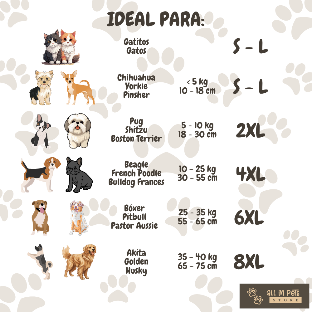 • 4XL – (50cm largo* 35cm ancho*66cm contorno)