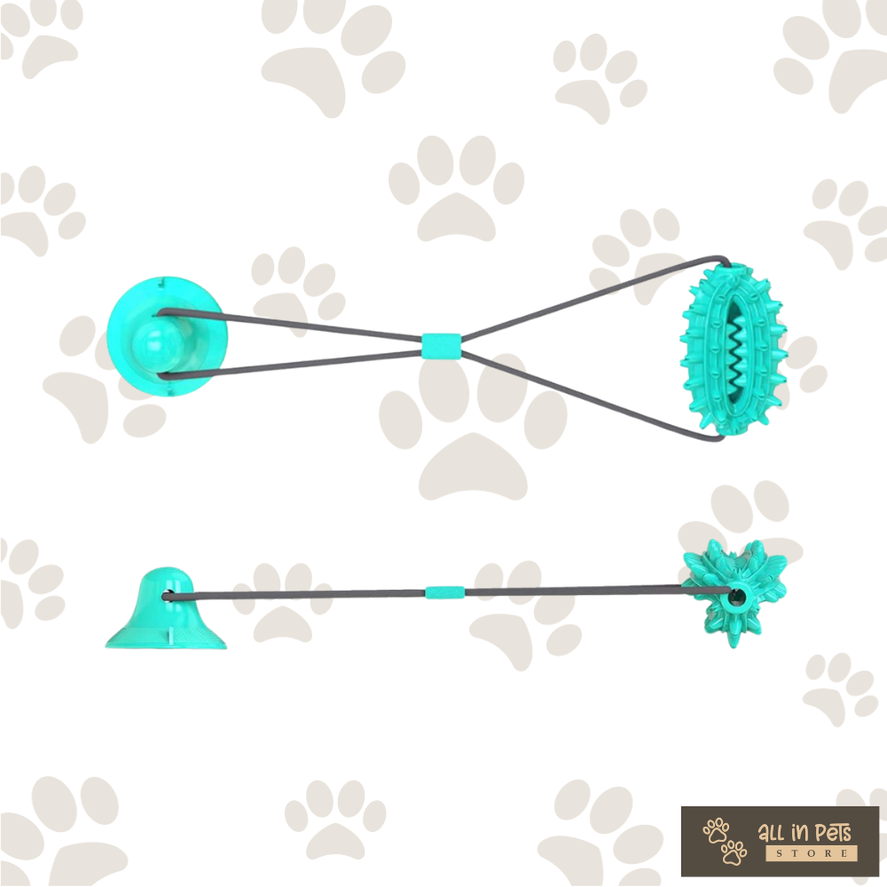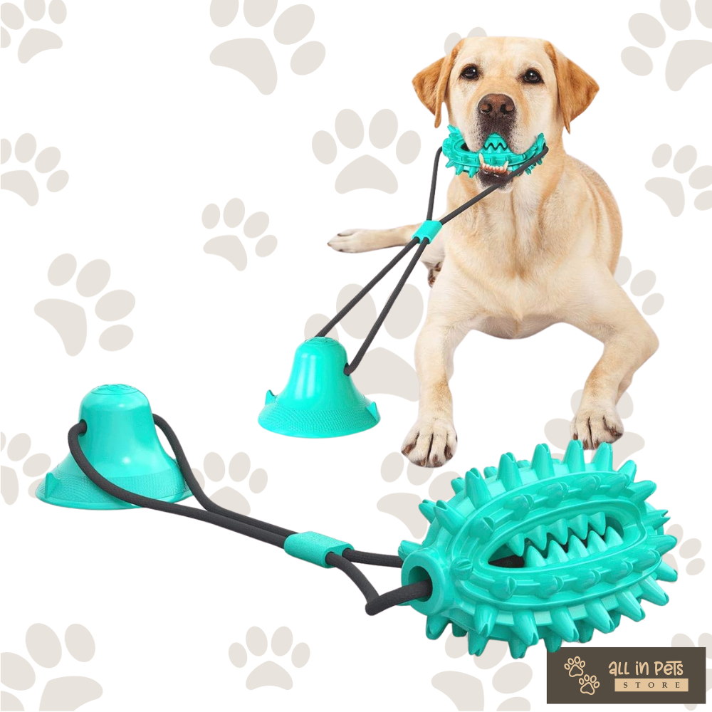 - Es un juguete para perros con ventosa para masticadores agresivos con funciones de limpieza de dientes, rechinar dientes, eliminar el cálculo, mantener la salud dental, revivir la ansiedad, entrenar la agilidad, mejorar el coeficiente intelectual, tira y afloja interactiva, matar el tiempo aburrido y la distribución automática de alimentos.